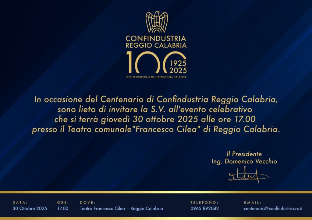 Invito Centenario di Confindustria Reggio Calabria – 30 ottobre 2025, ore 17.00 – Teatro “F. Cilea”
