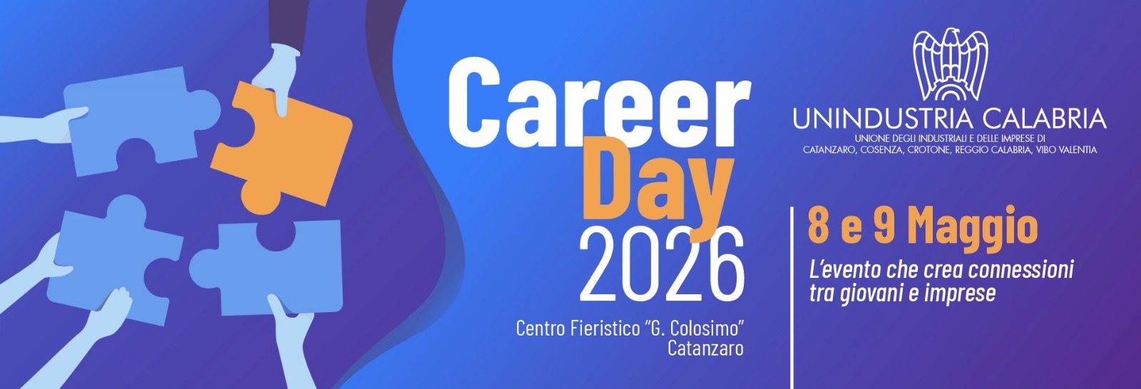 Unindustria Calabria presenta la prima edizione del Career Day – Fiera del Lavoro, un evento che si propone di creare un ponte tra imprese e giovani Calabresi, mettendo in contatto diretto oltre 100 imprese tra le più importanti aderenti al sistema confindustriale calabrese (e operanti in settori chiave dell’economia regionale: Agroalimentare, Turismo e trasporti, Edilizia e materiali da costruzione, Bancario e assicurativo, Energia-ecologia-ambiente, Metalmeccanica, Sanità, Servizi-ICT-comunicazione), con giovani, disoccupati, studenti, laureati e istituzioni. L’appuntamento è fissato per l’8 e il 9 maggio prossimi.