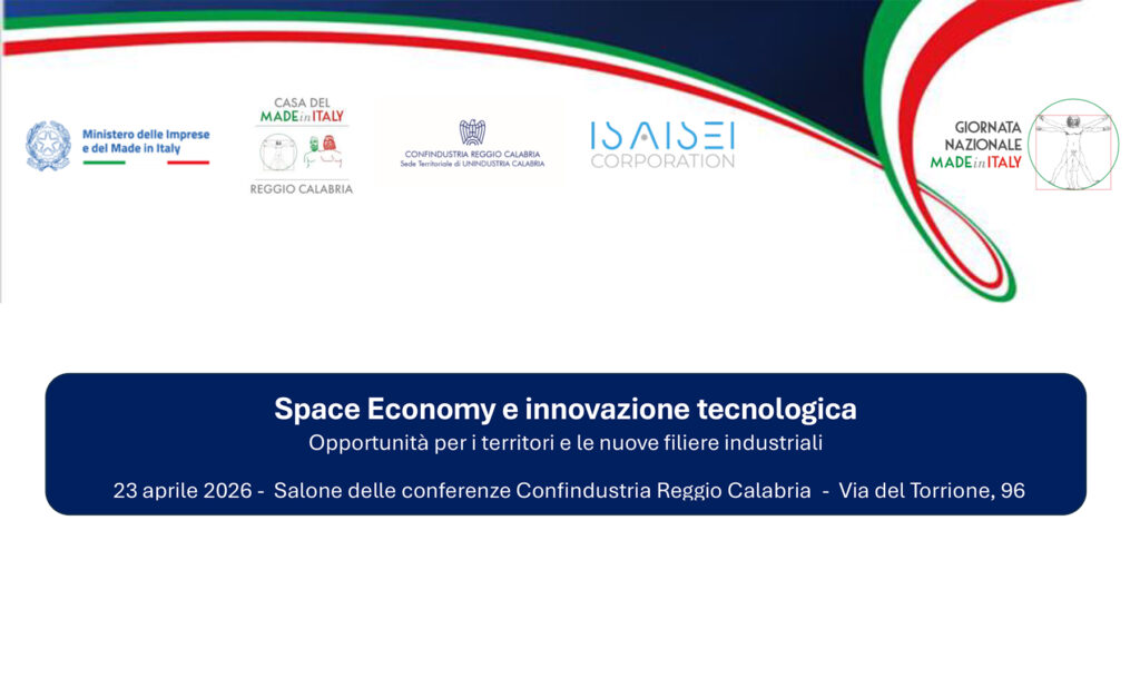 L’evento dal titolo “Space Economy e innovazione tecnologica – Opportunità per i territori e le nuove filiere industriali” è organizzato in occasione della Giornata Nazionale del Made in Italy e si terrà il prossimo giovedì 23 aprile 2026, alle ore 09:00, presso il Salone delle Conferenze di Confindustria Reggio Calabria.
